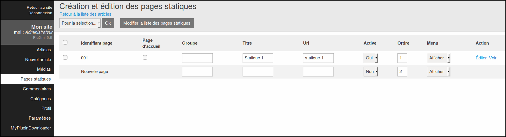 ← Pluxml : éditer les pages